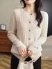 Casaco feminino de camisola cardigan twist twist 2024 Primavera e Outono Novo Andy veludo suéter de pescoço redondo cor sólida cardigan