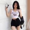 Camisole cinto feminino peitoral almofada verão quadrado colar curto exterior desgaste mangas umbigo alto elástico anti-corrida luz base superior