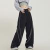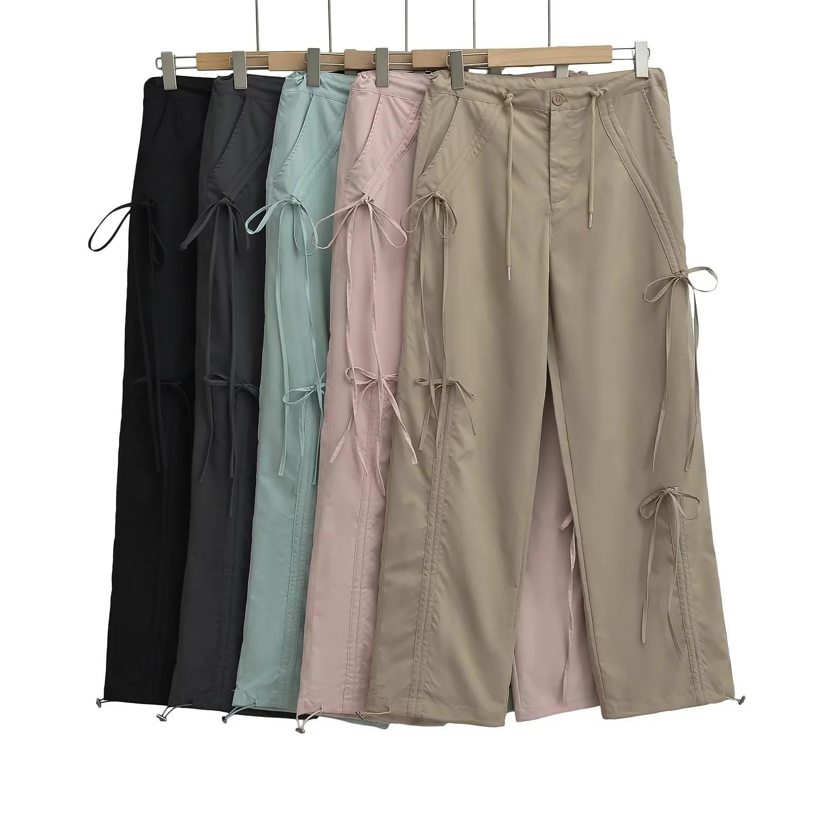 2024 Novo Design lace-up macacão americano feminino solto hip hop cordão reto amarrado tornozelo calças casuais