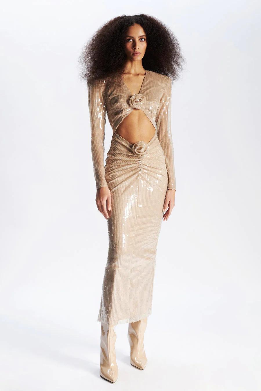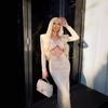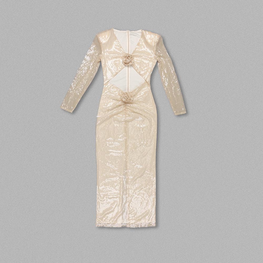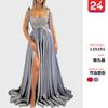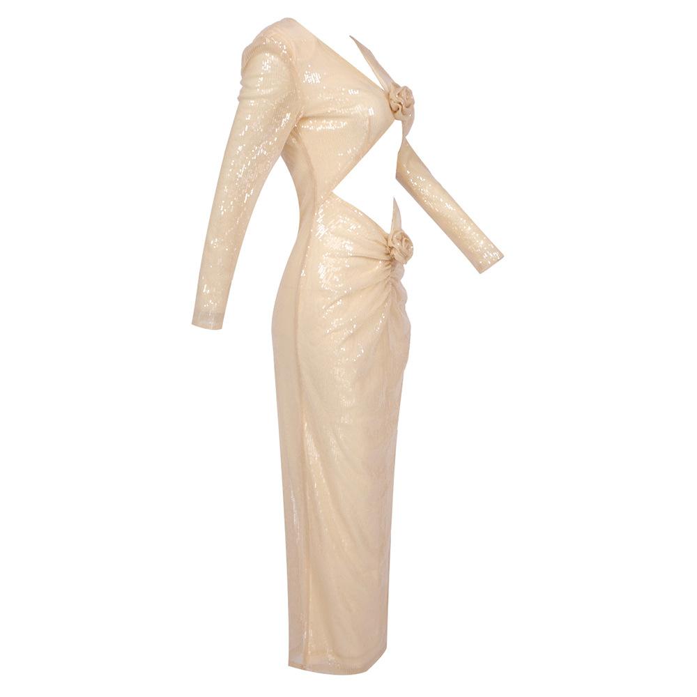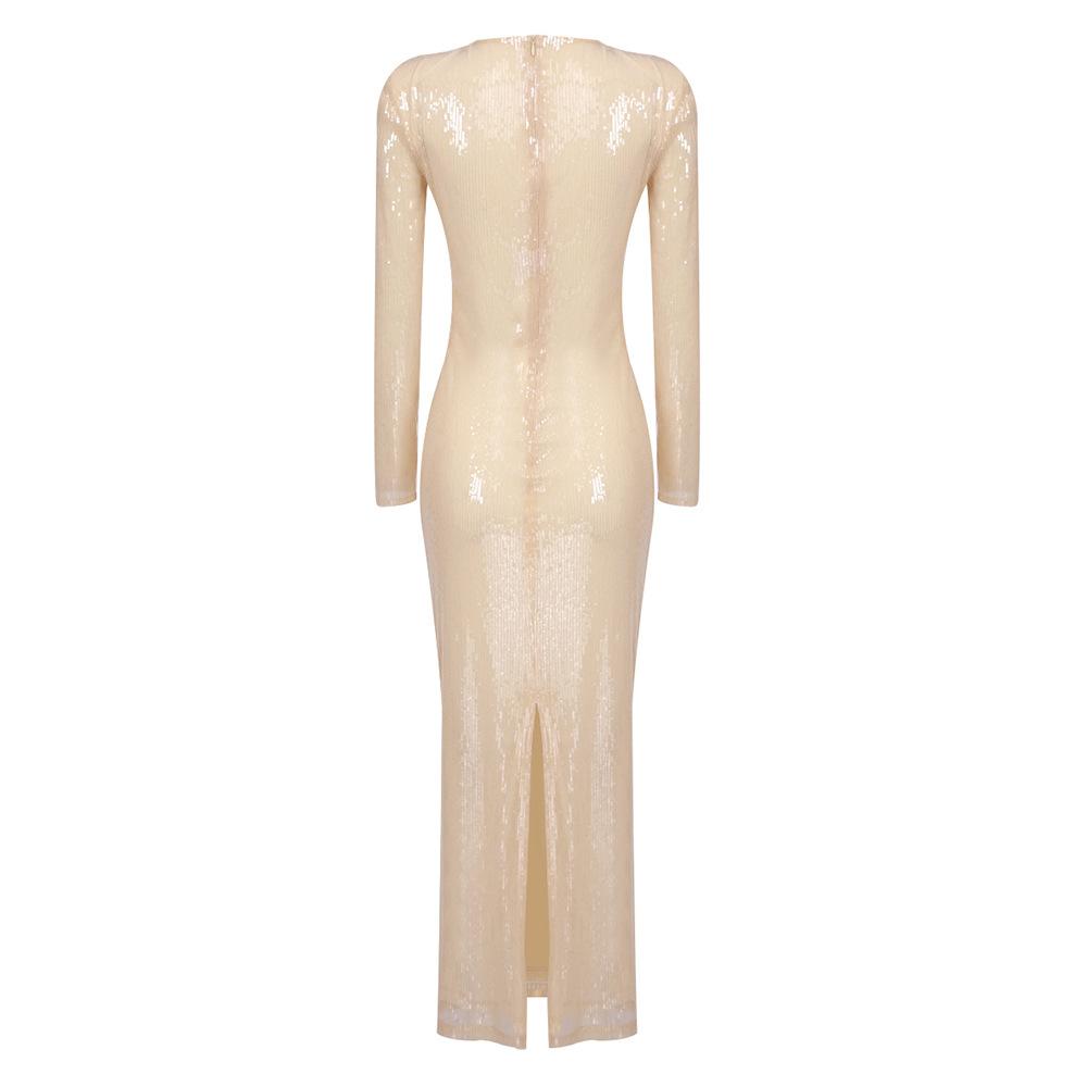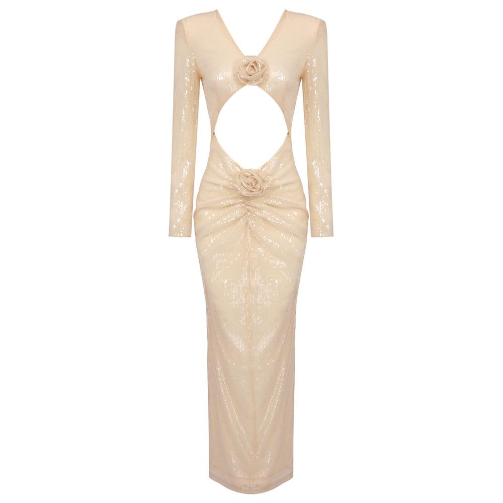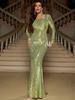 Roupa Nova Transfronteiriça Europeia e Americana Vestido Longo Manga Comprida Flor Damasco Paetê Saia Elástica Vestido de Verão Emagrecedor