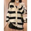 Cardigan de pelo de vison imitação, casaco feminino primavera 2024, novo estilo solto e preguiçoso, listrado, versátil, de malha