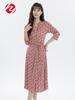 Huaye seda V-neck vestido 2024 verão novo lace-up estampado sete mangas plus size mulberry seda vestido midi