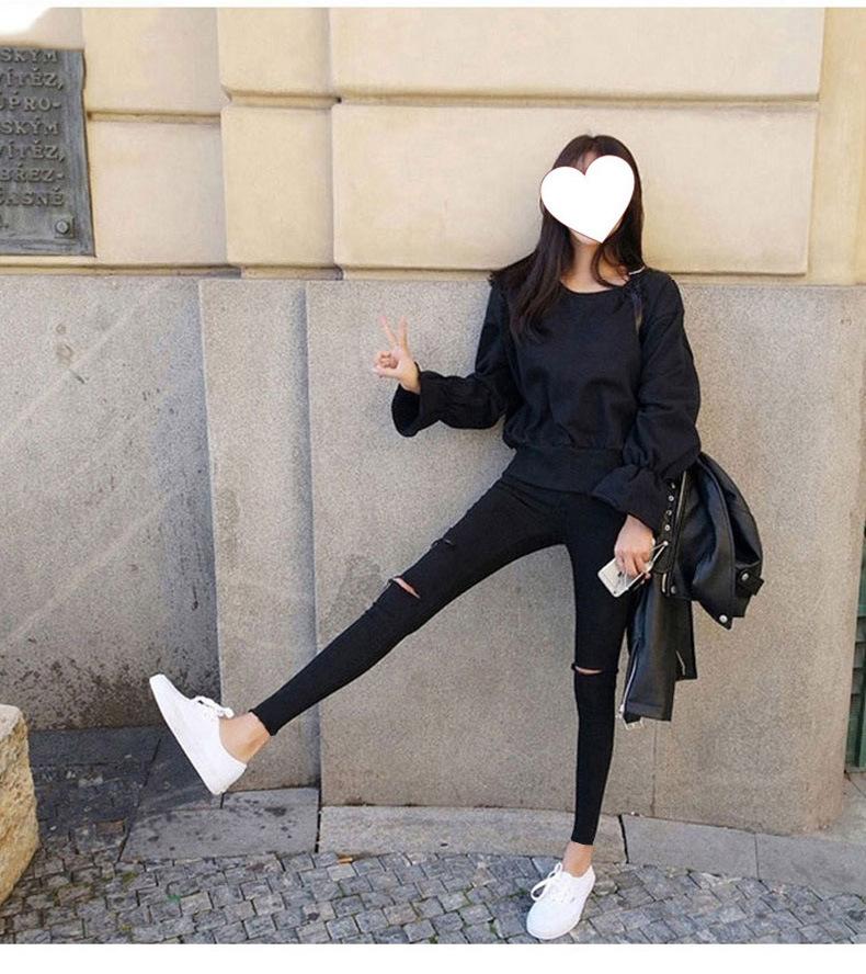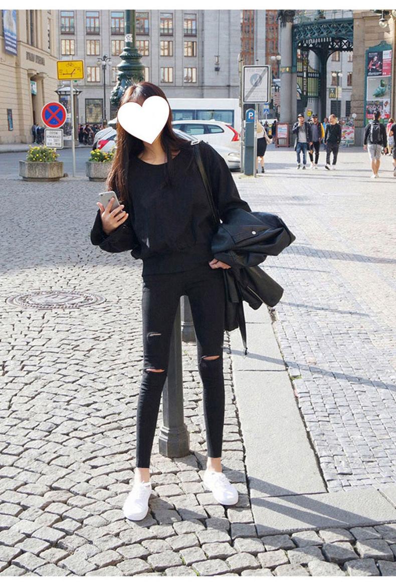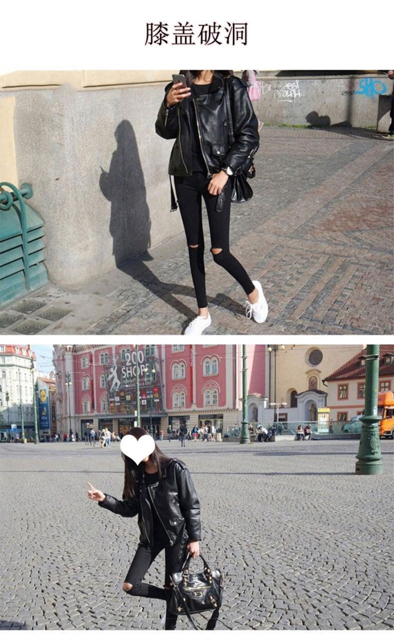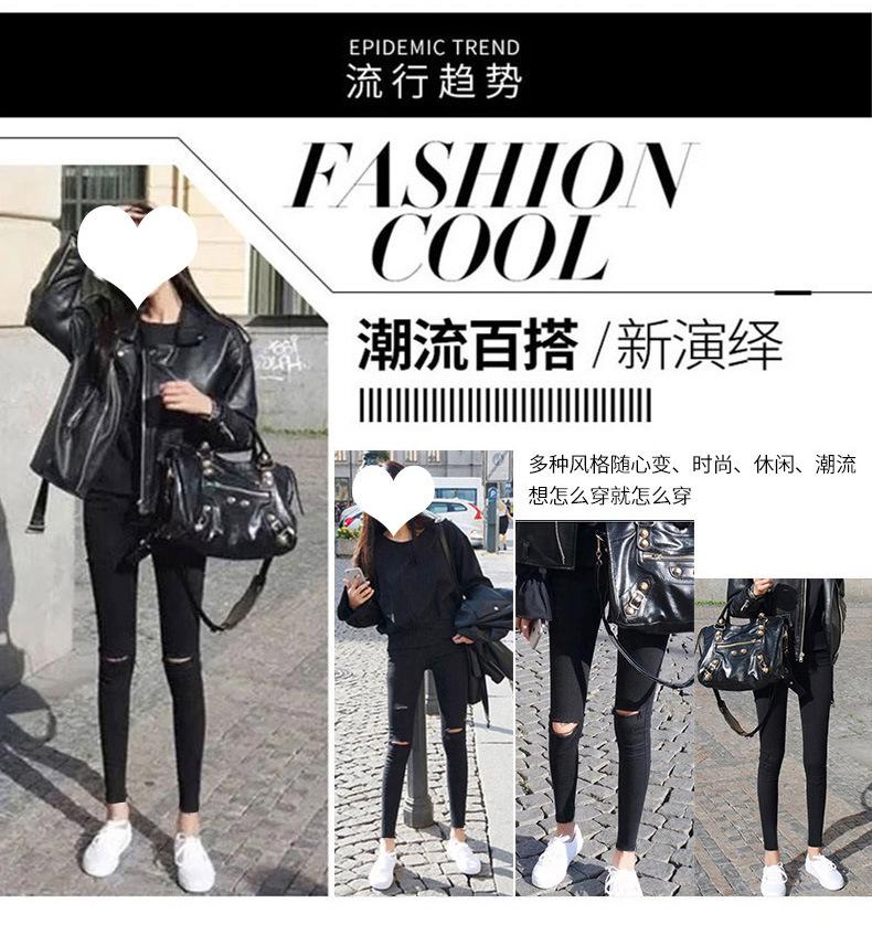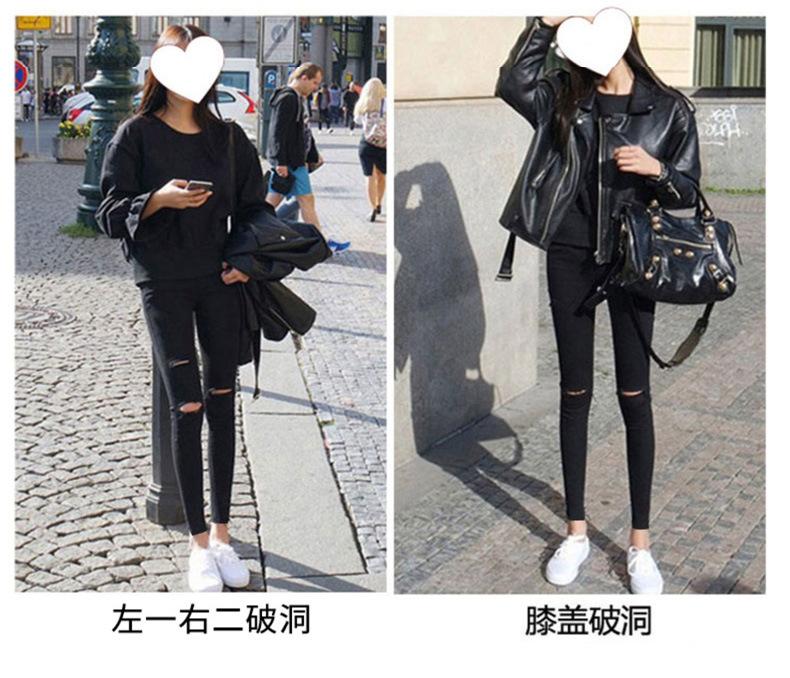 Leggings pretas rasgadas calças femininas de cintura alta esticar calças de lápis skinny emagrecedoras calças pretas pequenas calças pretas