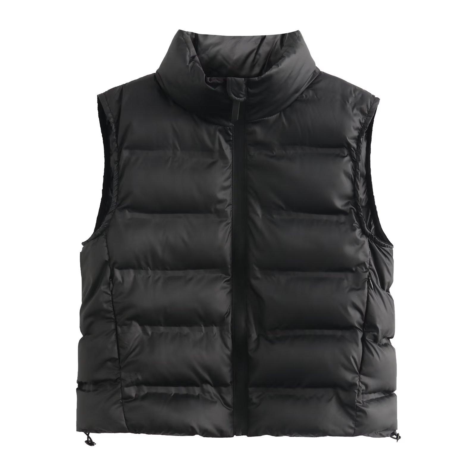 Novo Outono e Inverno 2024 Roupas Femininas Europeias e Americanas Transfronteiriças Moda de Rua Casual Gola Alta Colete de Algodão W034 23022