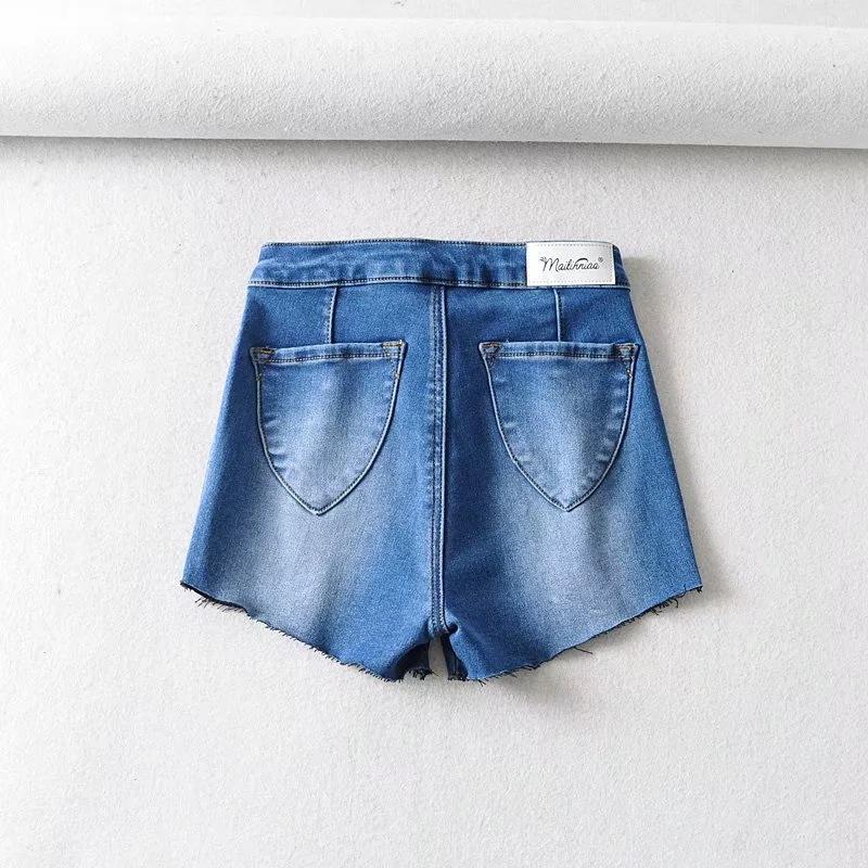 Europeu e Americano Sexy Hot High Cintura Pêssego Hip Shorts Denim Elástico Feminino Verão Alto Elástico Slim-fit Hip Fitness Short