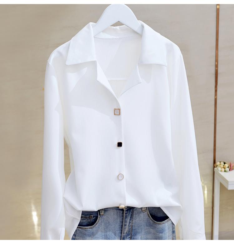 Camisa Branca Decote V Feminina Manga Longa 2024 Primavera Nova Top Elegante Design Nicho Look Emagrecedor Camisa Drapeada