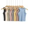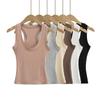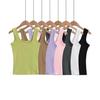 Estilo europeu e americano gola em U cor sólida Slim-fit Alça de ombro Colete de ombro estreito feminino 2023 verão hot girl curto sem mangas