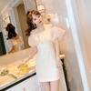 Vestido Elegante Feminino de Um Ombro com Recortes em Malha e Babados 2025 Verão Novo Saia de Fada Respirável 5003