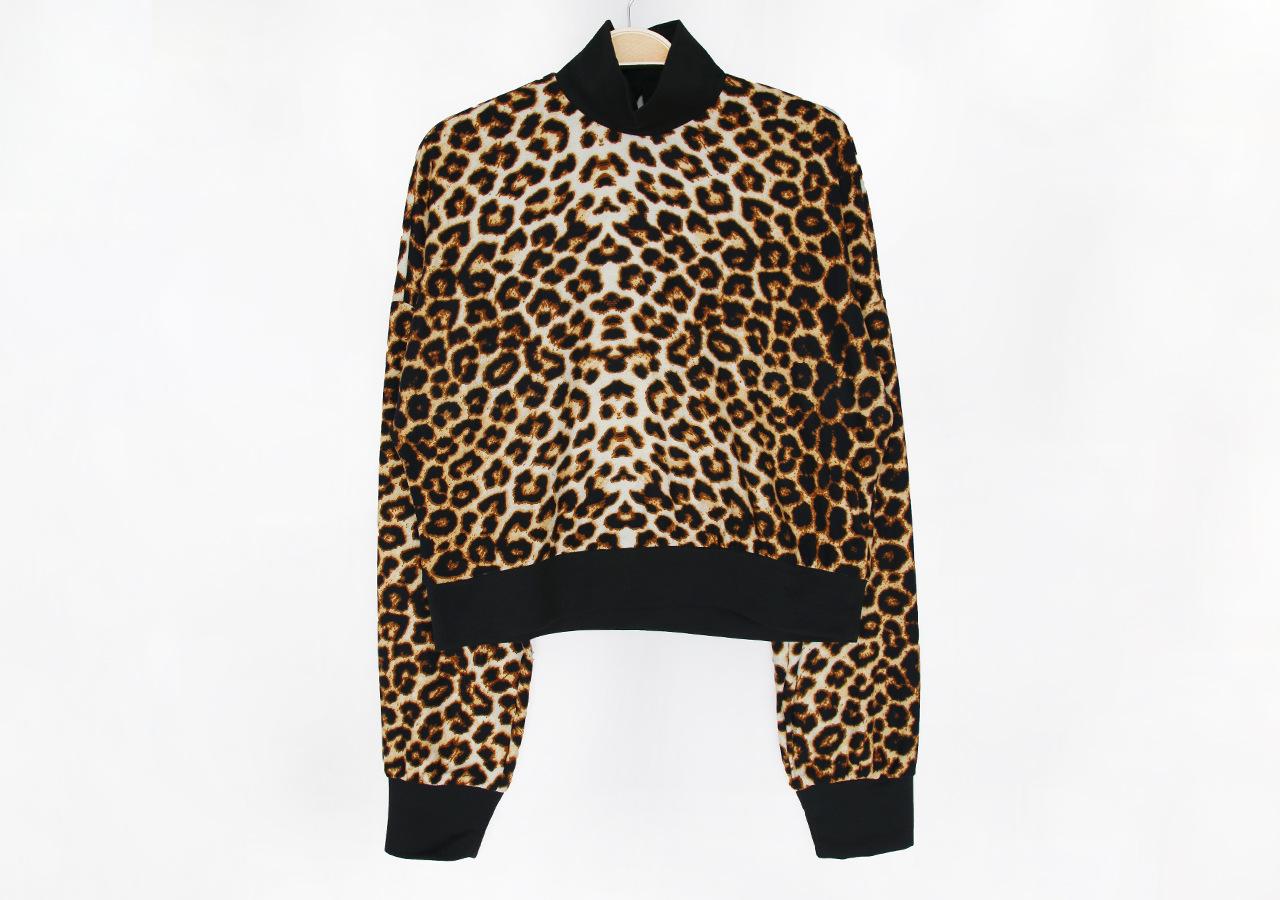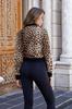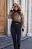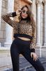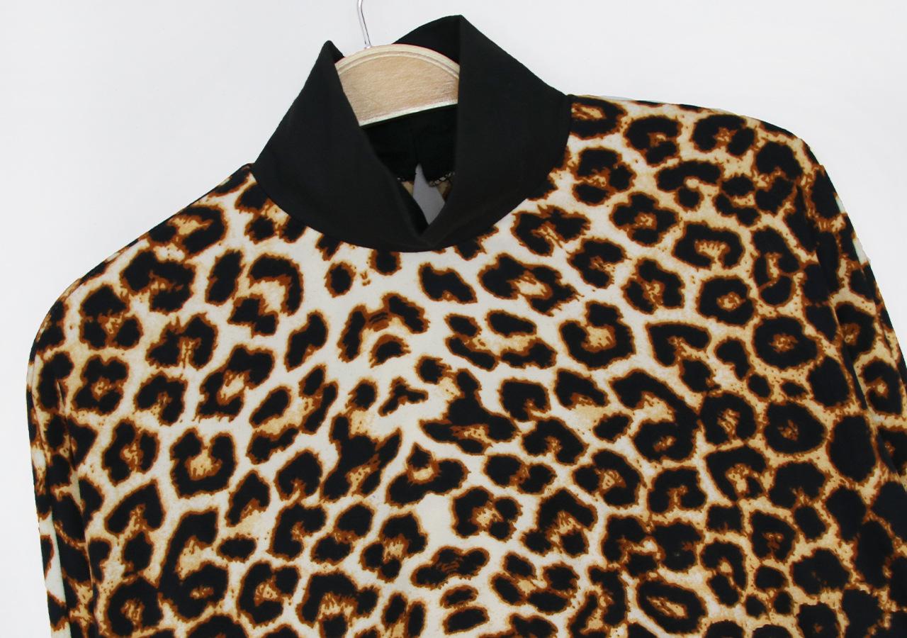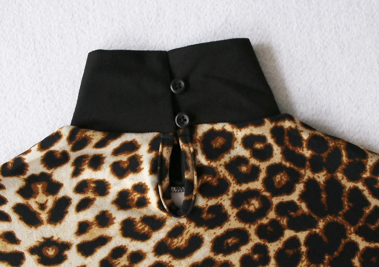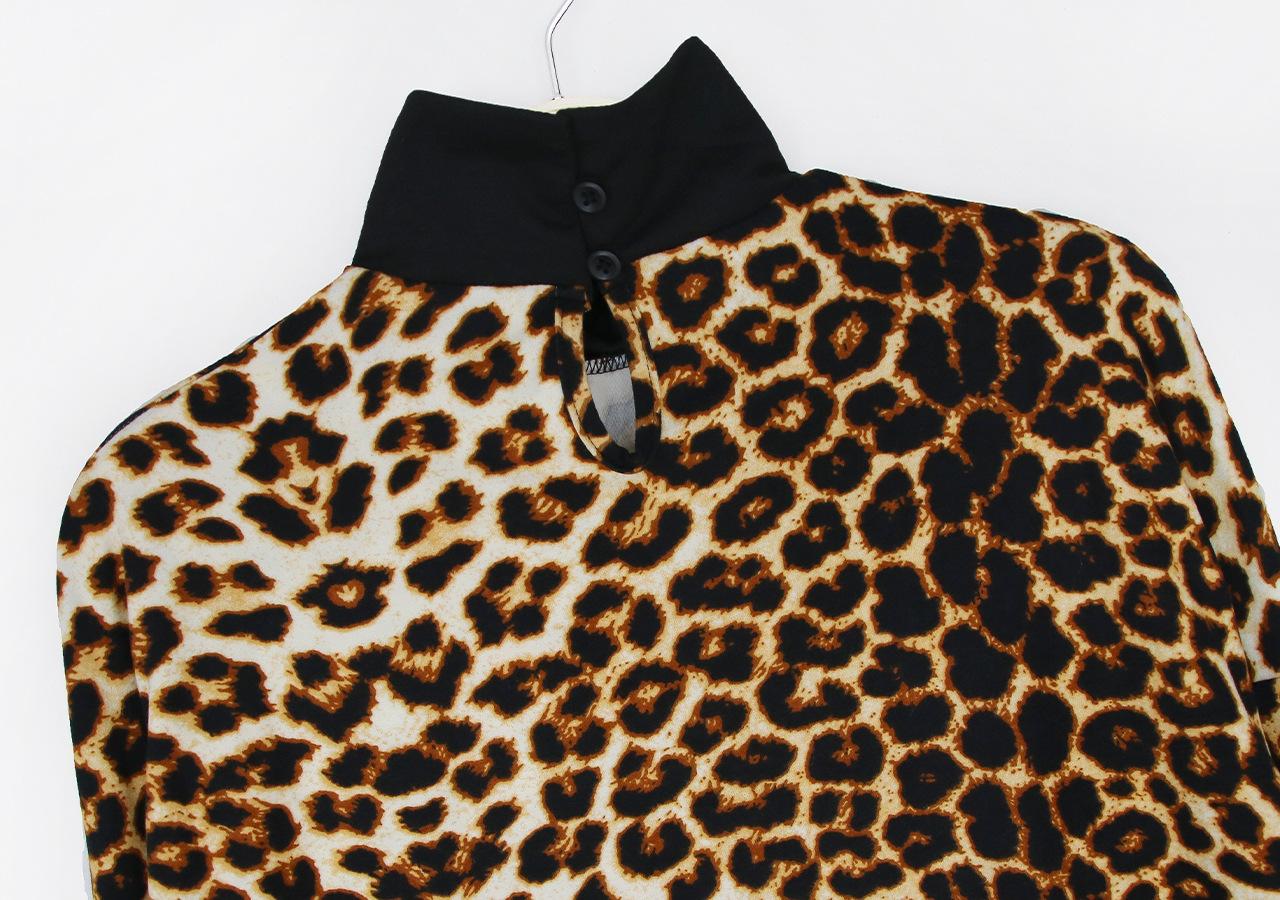 Estação Europeia Outono Sexy Navel-exposto manga comprida T-shirt feminina de gola alta Leopard Print cintura alta moda Slim-fit camisa base de emagrecimento