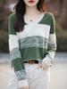 2024 primavera nova cor decote em V combinando suéter feminino solto casual não-Pilling algodão malha camisa de fundo Feminino fino