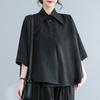 Camisa Feminina Solta de Manga Comprida 2025 Design Personalizado Nicho Comprimento Médio Assimétrico Top Preto