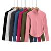Hot girl sexy turtleneck stretch fleece-fored bottoming shirt feminina outono e inverno slim hem curvado manga comprida T-shirt