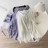 Camiseta Sense Algodão Cânhamo Sense Design Meio Botão Gola Redonda Manga Longa Feminina Verão Fina Solta Combinação Preguiçosa Protetor Solar Tendência