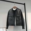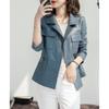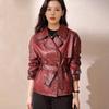 Nova Jaqueta de Couro Genuíno Haining Outono 2025 Feminina Curta Cintura Cordão Couro Genuíno Pele de Ovelha Jaqueta Gola Terno