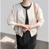 Jaqueta Minson Online Estilo Coreano Solta com Lapela para Mulheres, Temporada de Primavera, Design de Bolso Duplo, Jaqueta Curta com Zíper, Roupa Exterior 90909