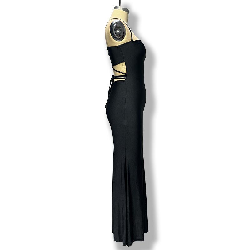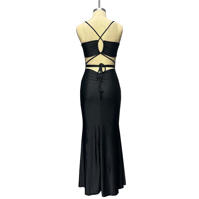 Comércio exterior Roupas femininas europeias e americanas 2024 primavera novo vestido longo sem costas renda-up enrolado peito alça vestido sexy vestido mulheres