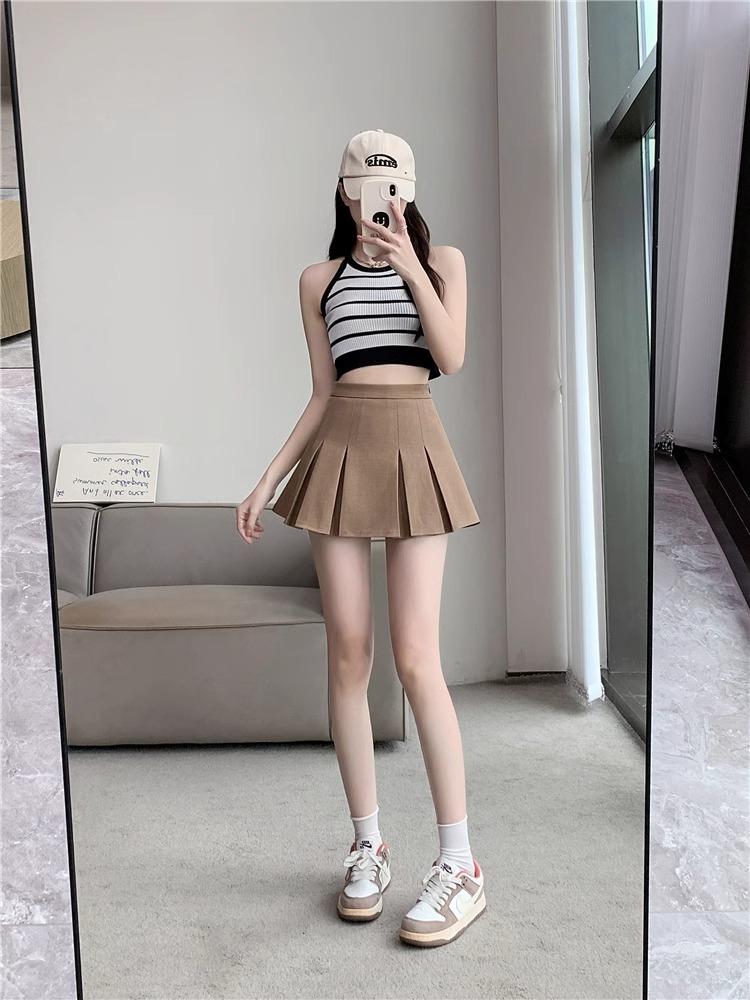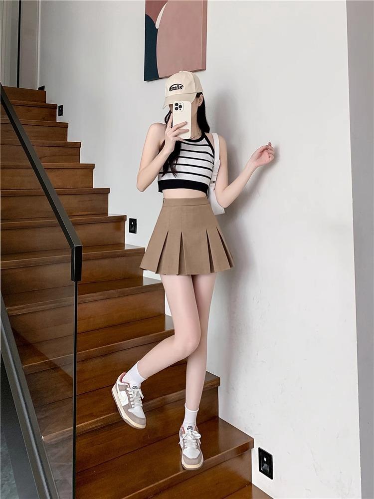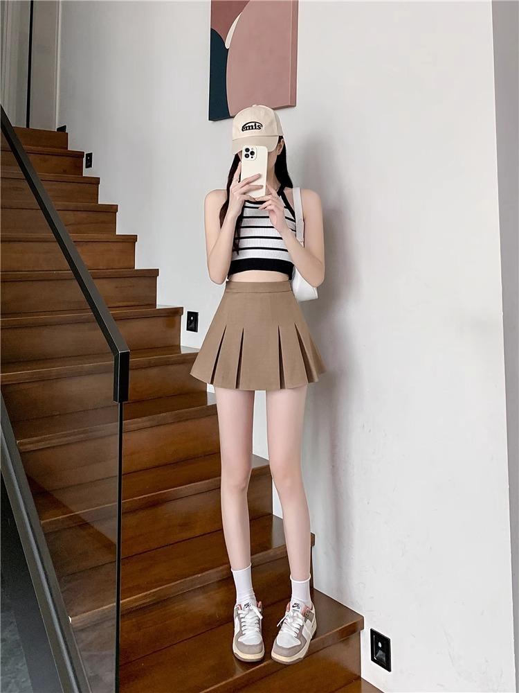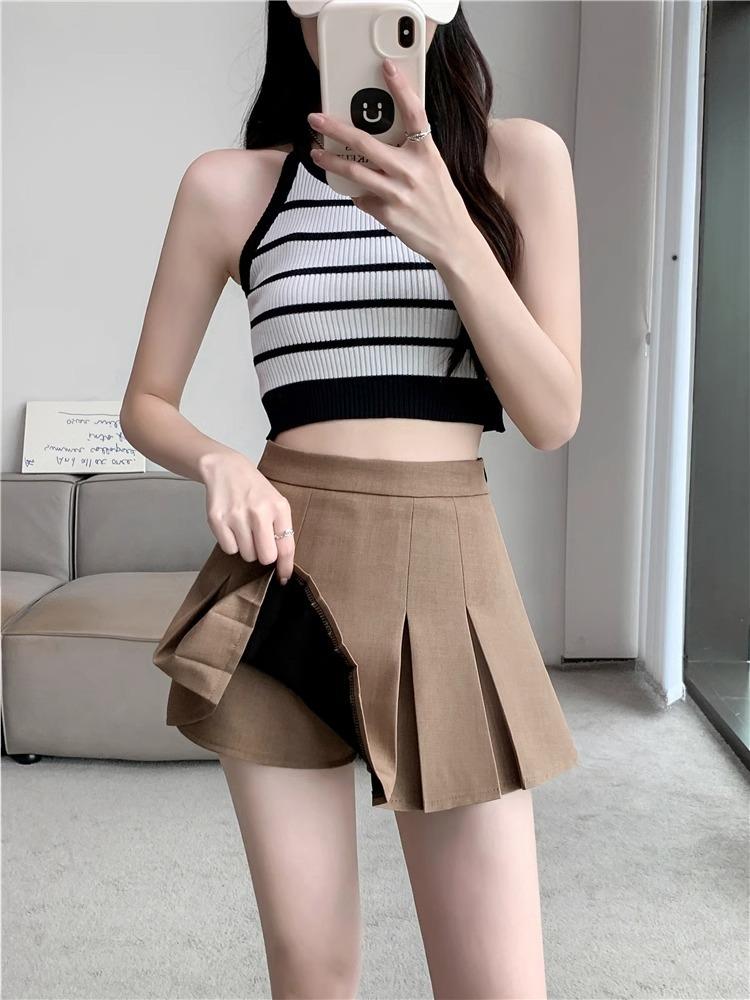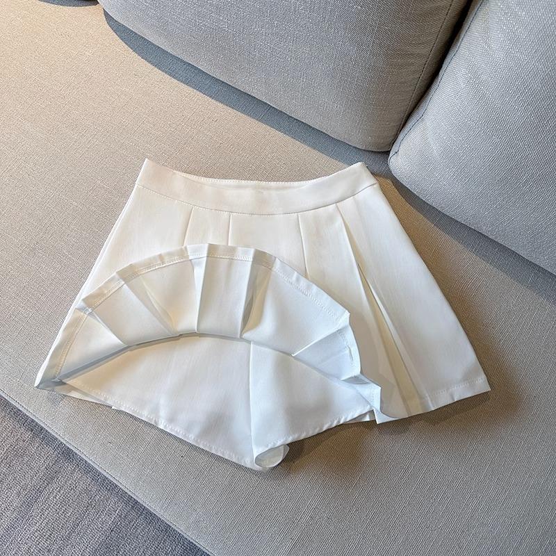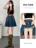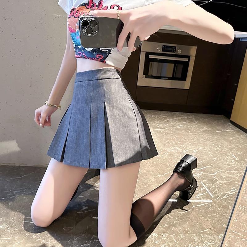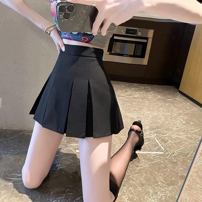 Saia Plissada Preta Feminina Verão 2024 Novo Estilo Spice Girl Saia Curta Cintura Alta Pequena Linha Saia Terno