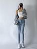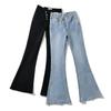 Primavera nova moda feminina europeia e americana lavada diagonal micro-slack calças jeans K10206