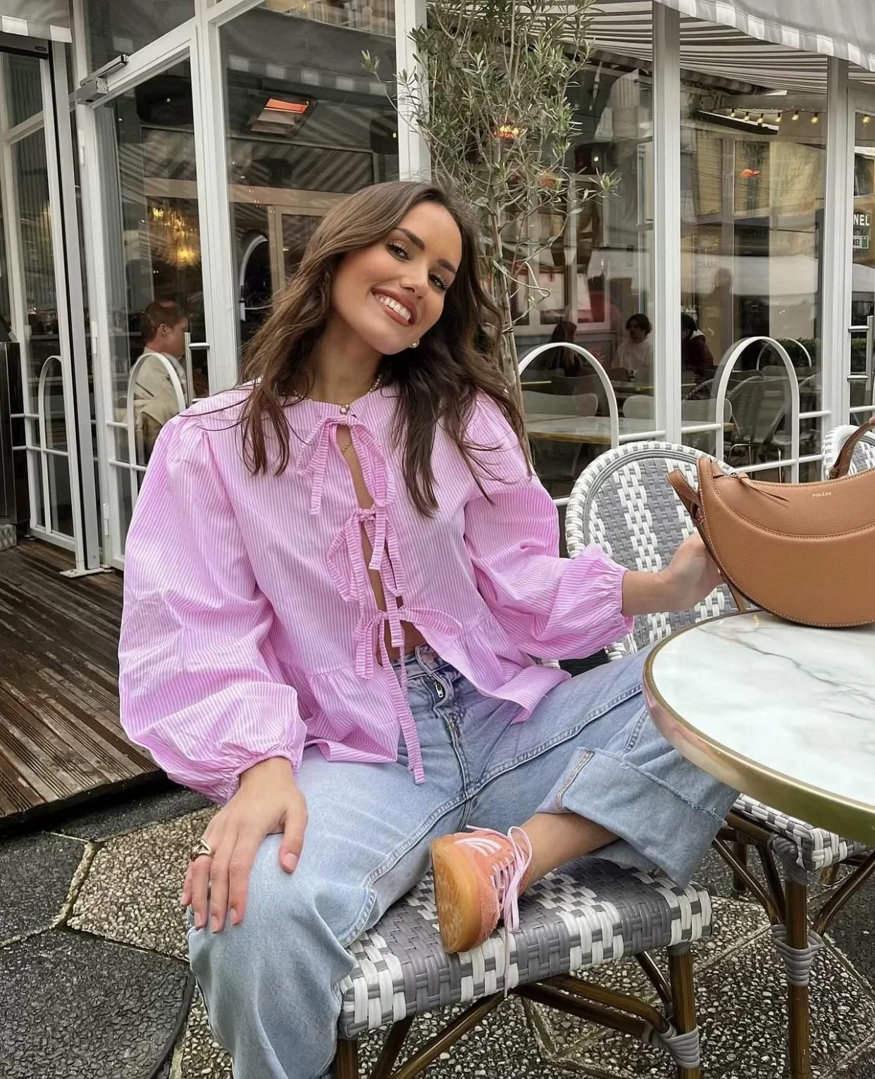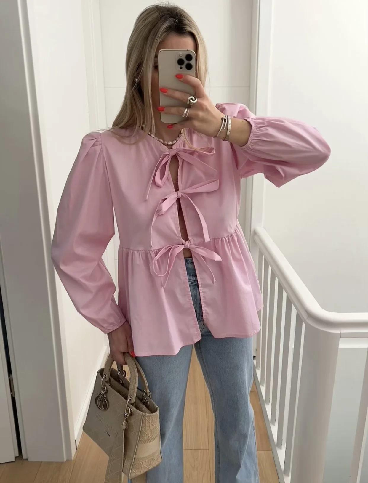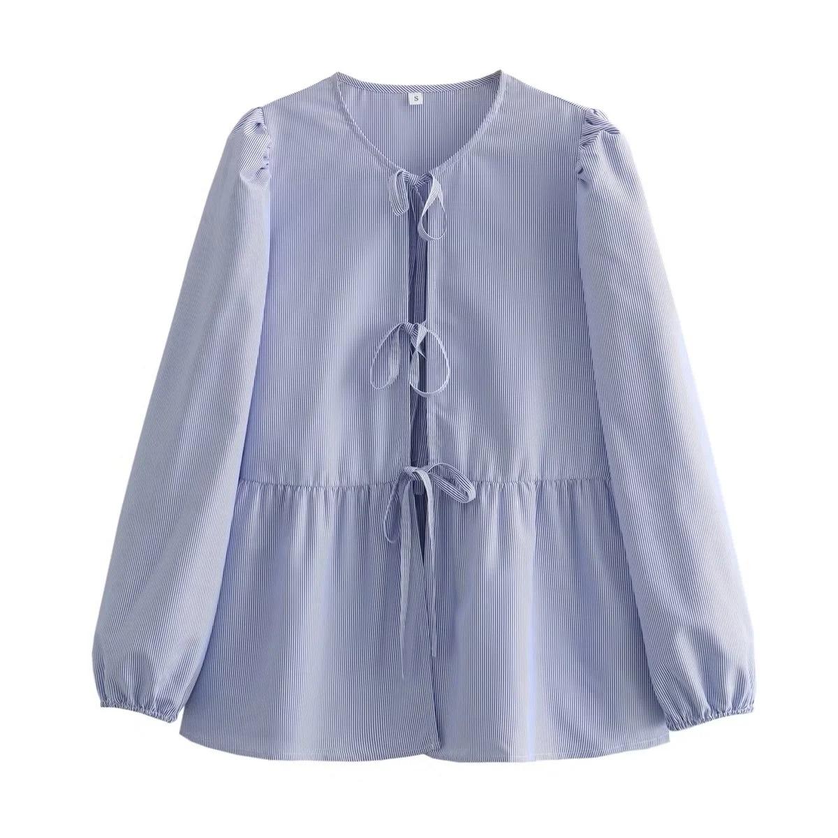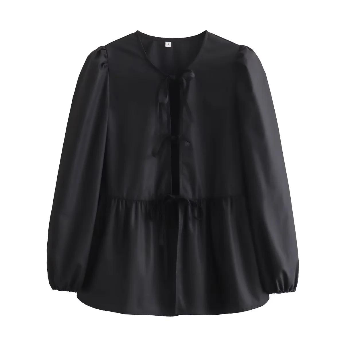 Compre Roupas europeias e americanas nova exportação por atacado 7-color puff sleeve bow tie cardigan solto casual camisa versátil no atacado no Joom.pro