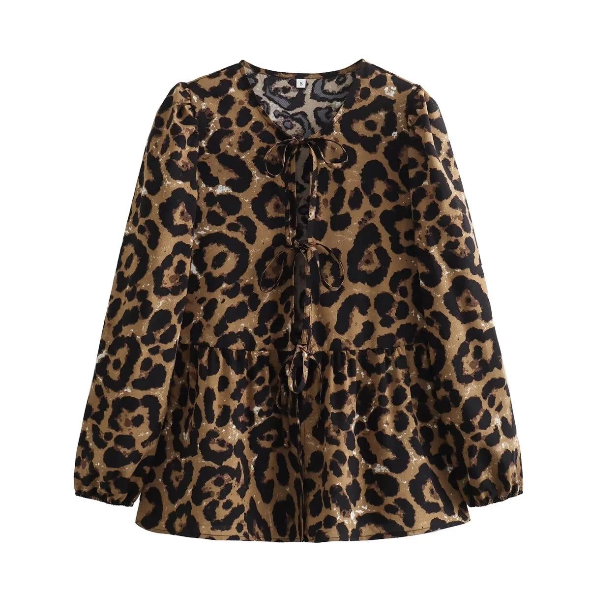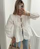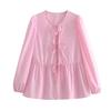 Roupas europeias e americanas nova exportação por atacado 7-color puff sleeve bow tie cardigan solto casual camisa versátil
