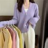 Rosa camisola com decote em V Mulheres 2 023 início da Primavera e Outono novo curto solto top suave preguiçoso casaco de malha