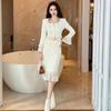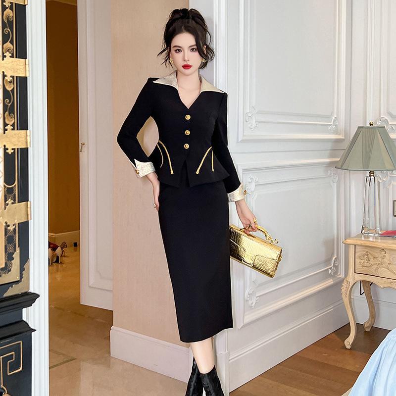 2025 Novo Estilo de Roupa de Outono Pequeno Perfumado Decote V Cintura Jaqueta Top Saia Quadril Cintura Alta Conjunto de Duas Peças 30677
