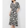 Vestido de Seda Marca M, Seda de Amora, Colarinho de Camisa Estampado em Bloco de Cores, Mangas Compridas Amarradas, Vestido Longo Emagrecedor, Cintura Alta, Efeito Emagrecedor