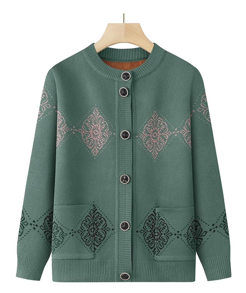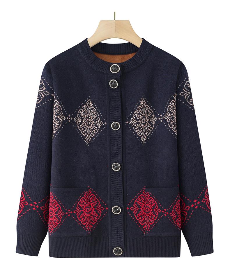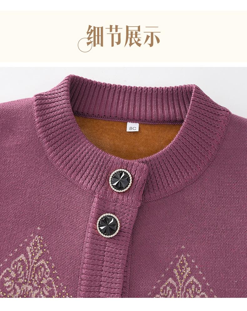 Vovó Primavera e Outono mais casaco de veludo idoso roupas de inverno suéter da mãe feminina Velha Senhora Cardigan roupas quentes roupas idosas