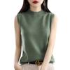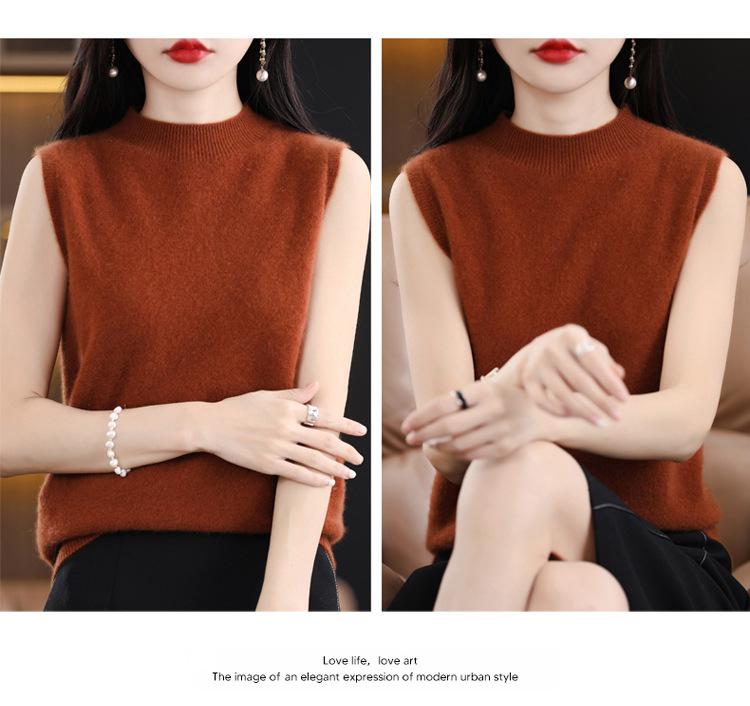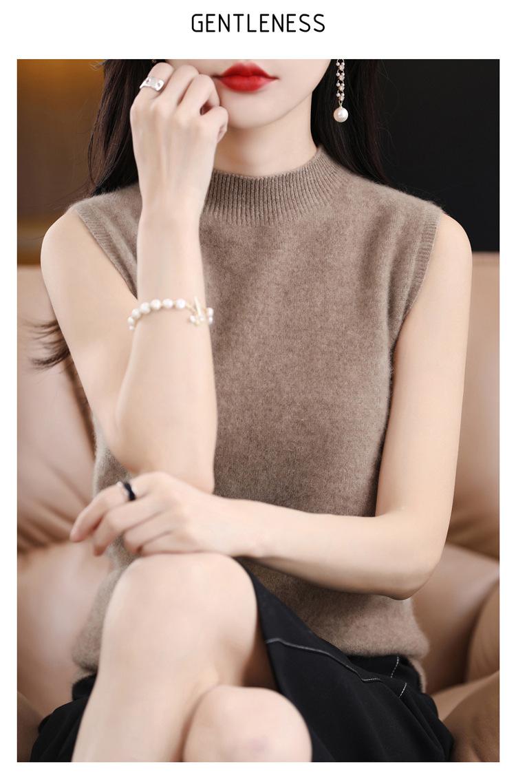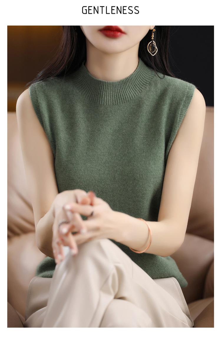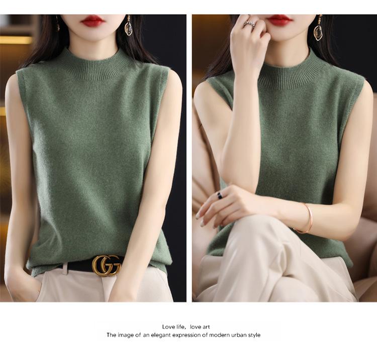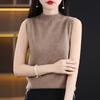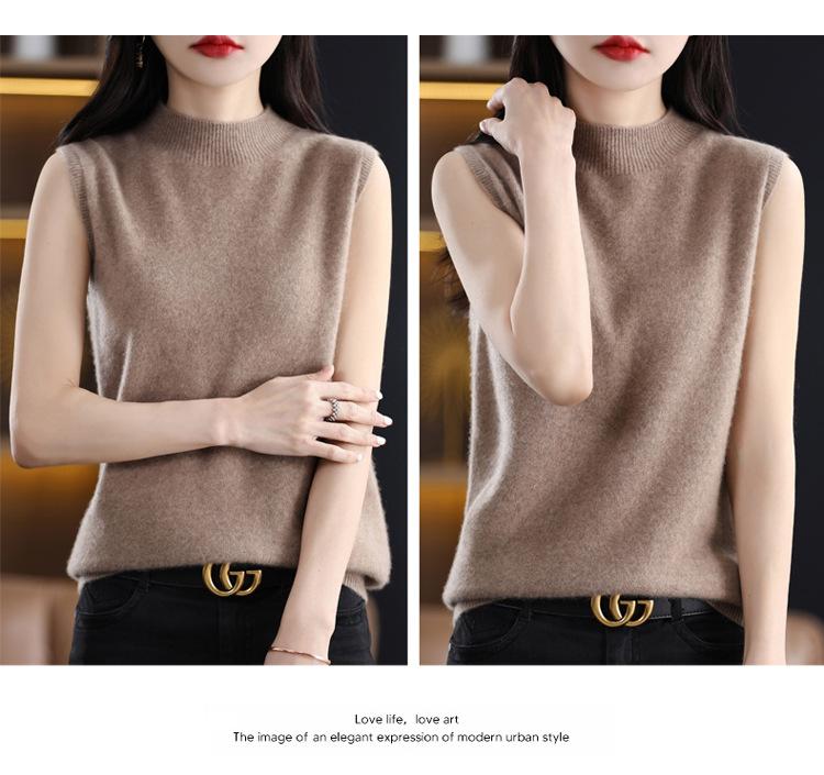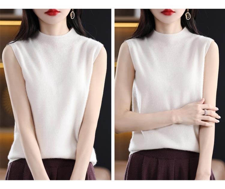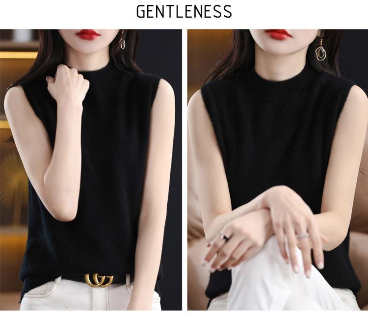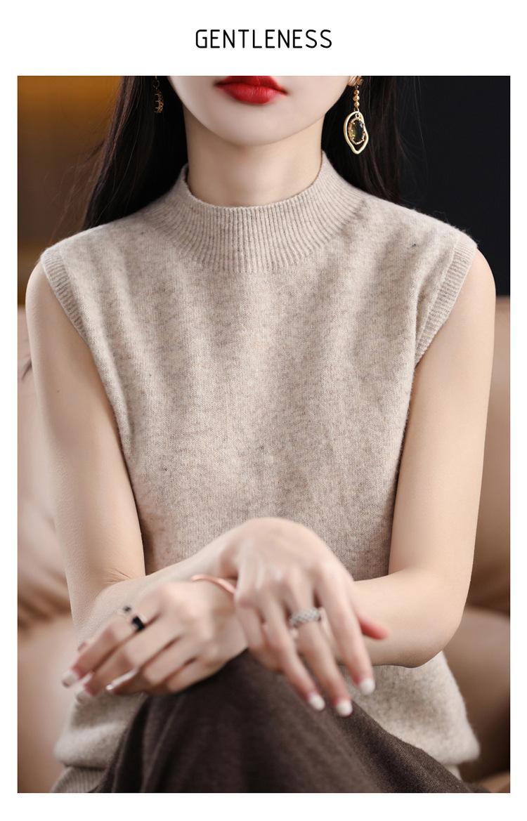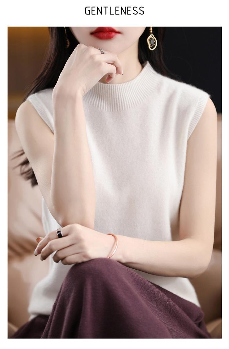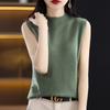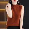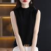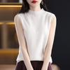 Primeira Linha Pronta para Vestir 100% Lã Pura Outono e Inverno 2025 Novo Pulôver de Tricô Feminino Gola Média Curto Sem Mangas