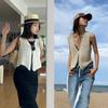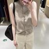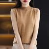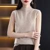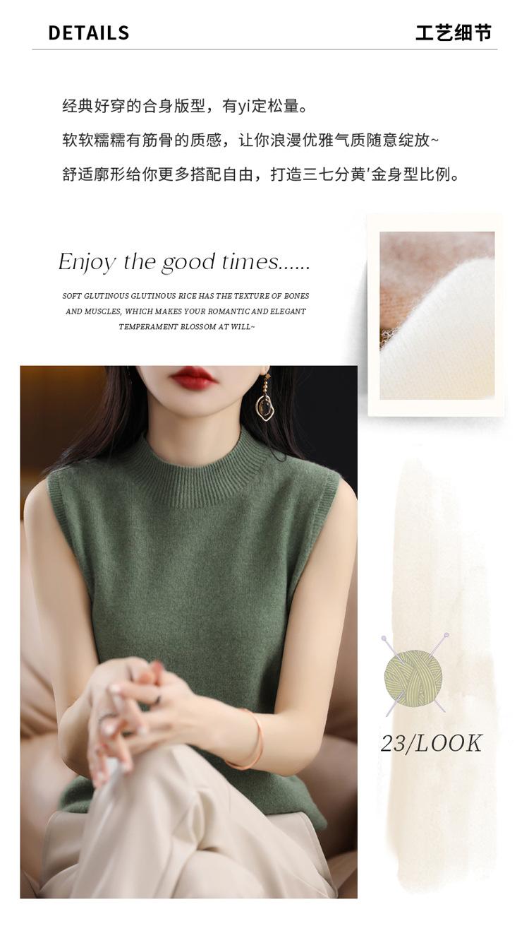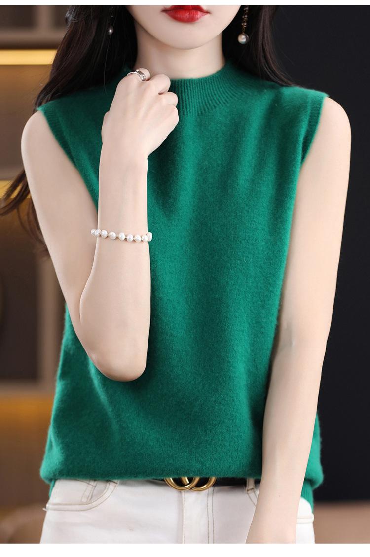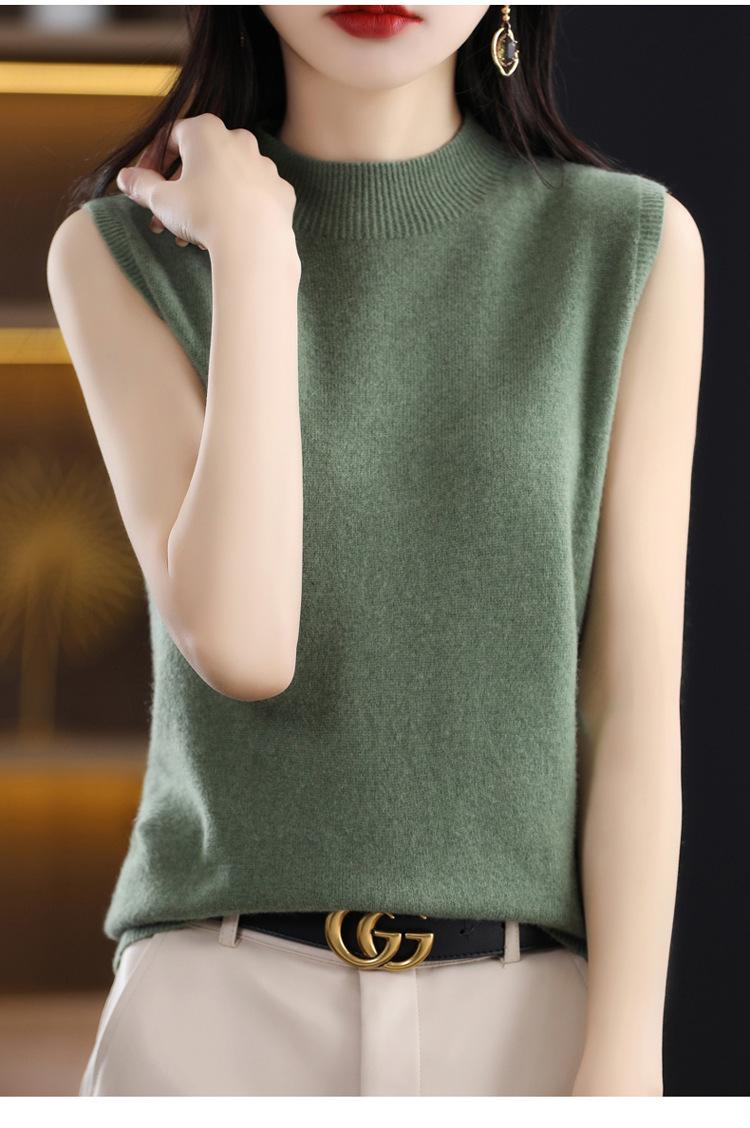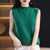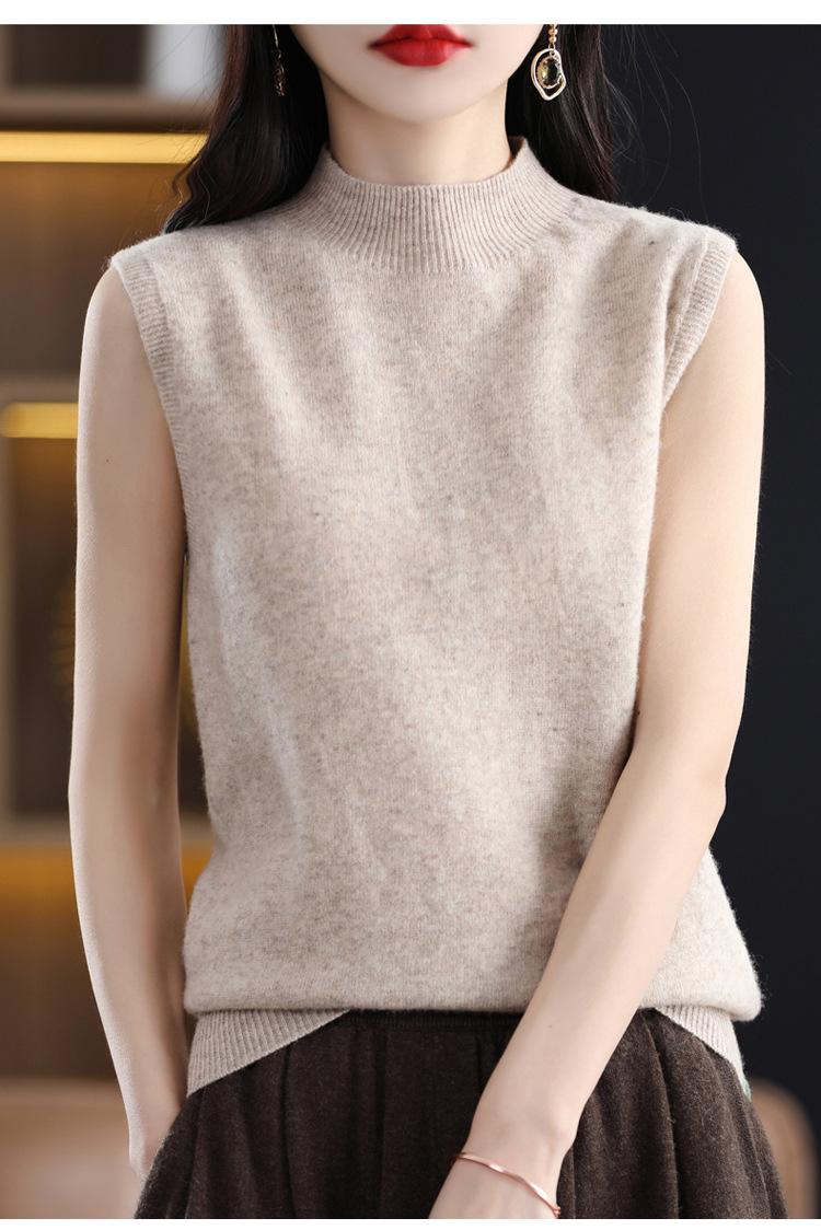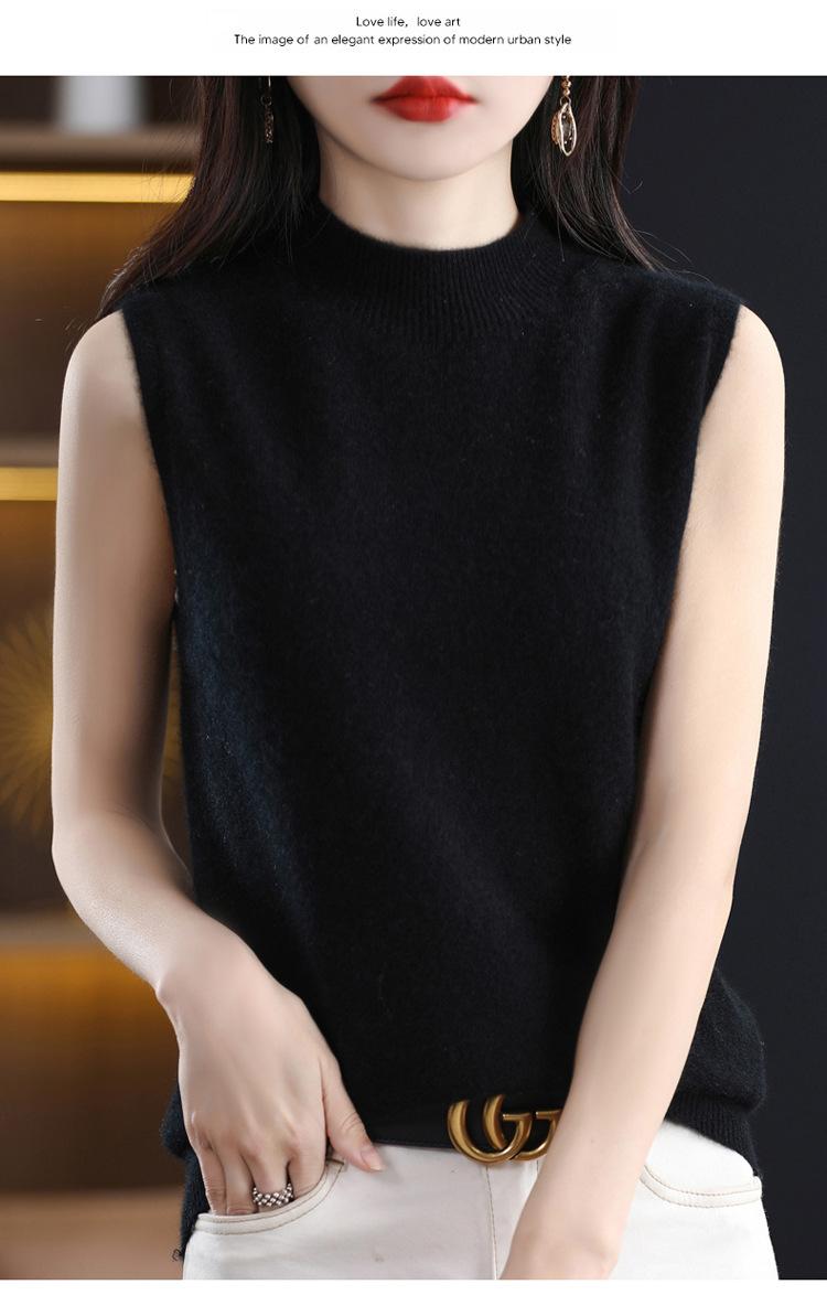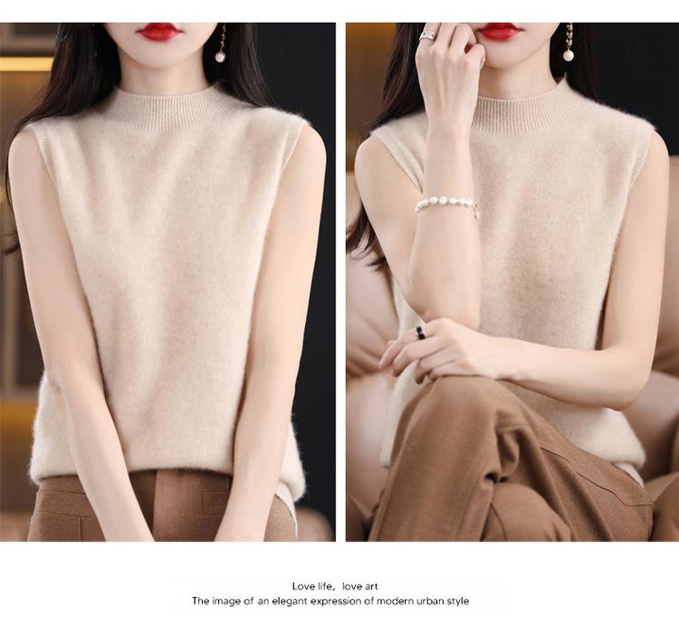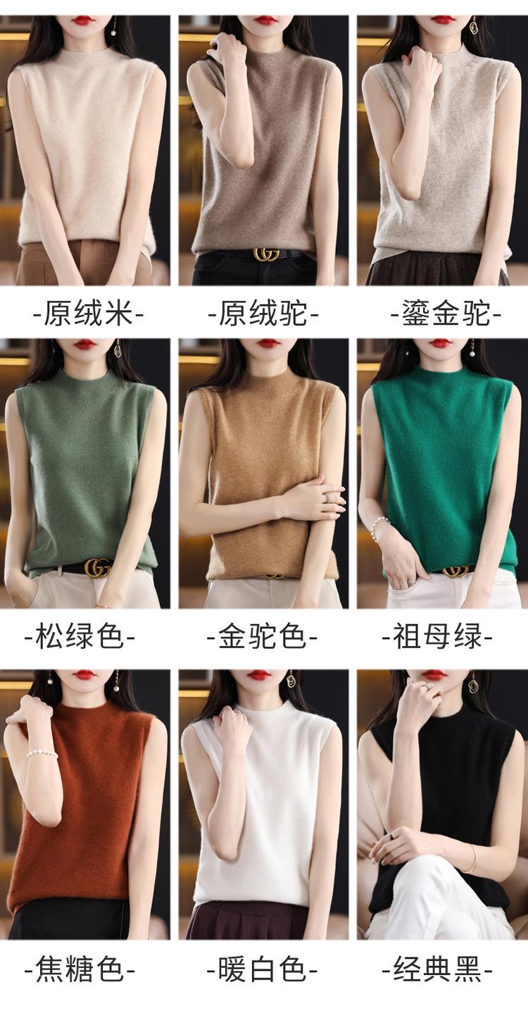 Primeira Linha Pronta para Vestir 100% Lã Pura Outono e Inverno 2025 Novo Pulôver de Tricô Feminino Gola Média Curto Sem Mangas