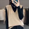 Outono e Inverno Novas Mulheres Solto Jacquard Cashmere Vest Crewneck Pullover Colete Sem Mangas Fenda Malha