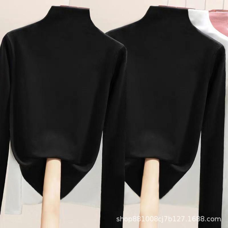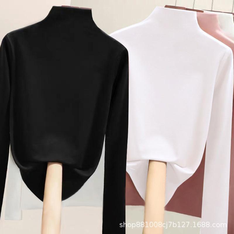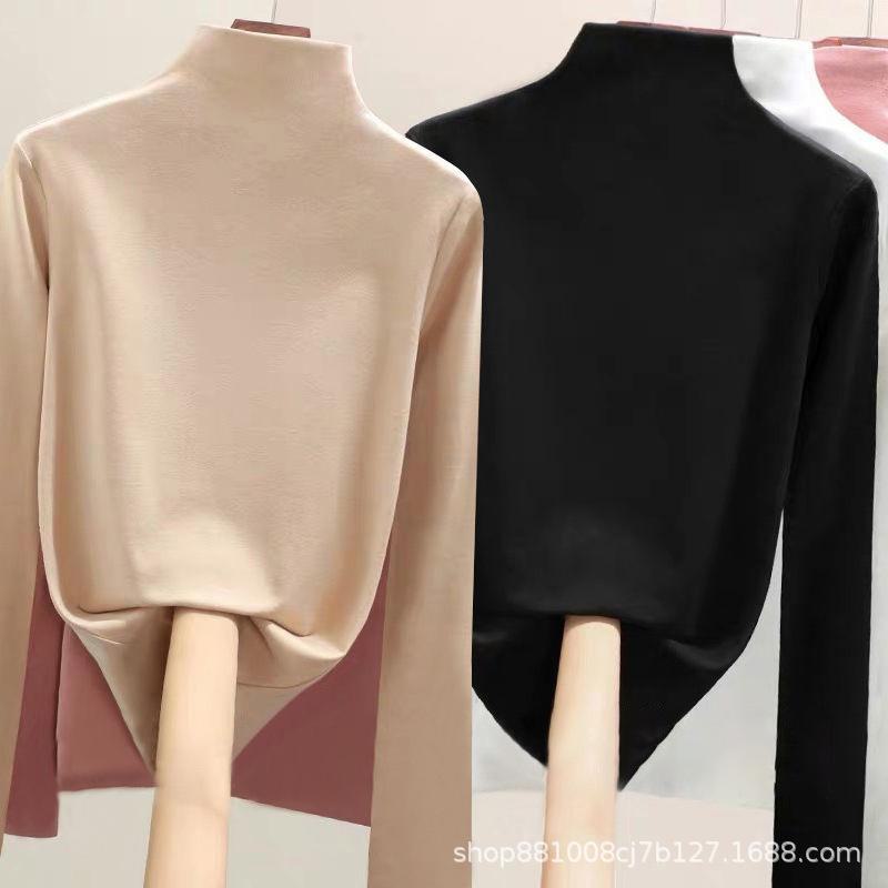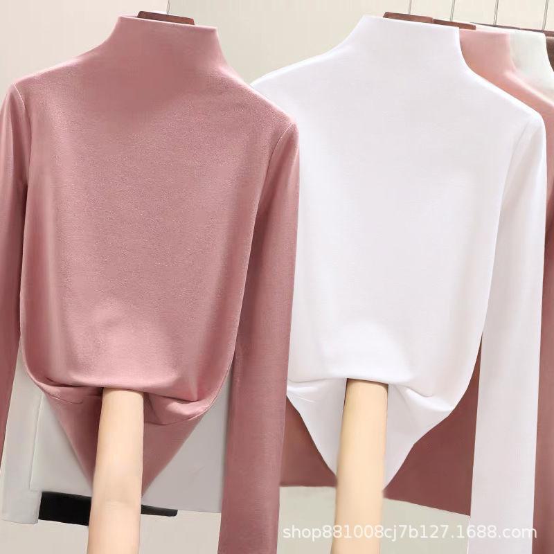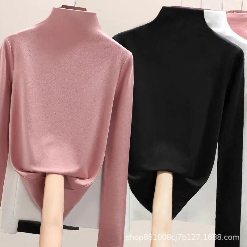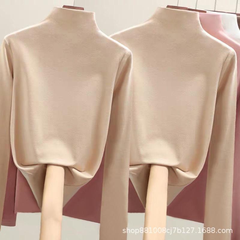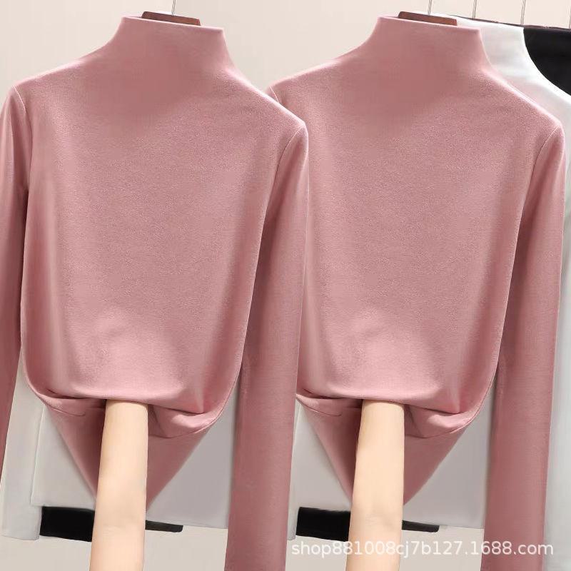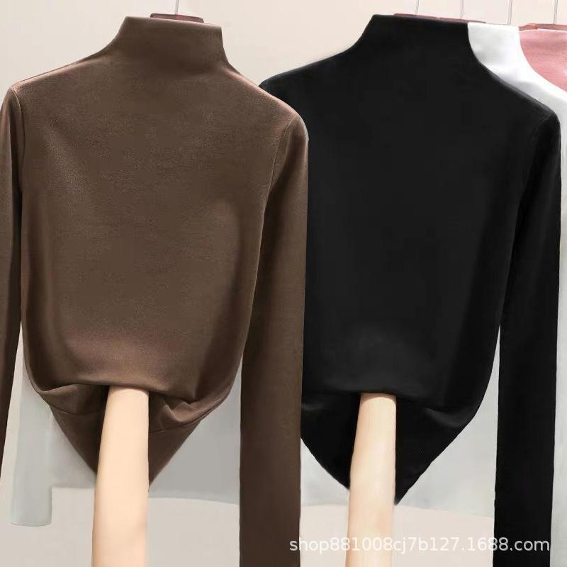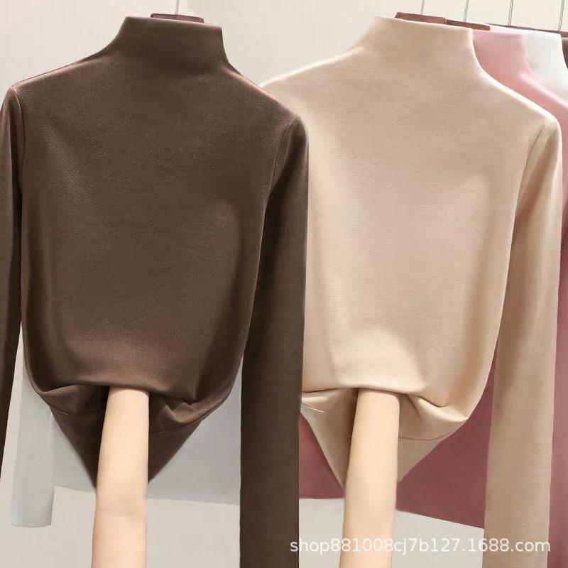 Direto da fábrica de veludo de dupla face meia gola alta assentamento camisa feminina outono e inverno forrado de lã quente desgaste interno de uma peça gola de veludo top