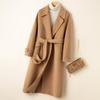 Cor sólida dupla face casaco de lã feminino outono e inverno novo feminino de peito duplo de comprimento médio joelho-comprimento terno de lã