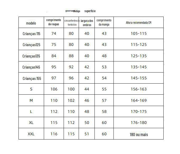 A capa é feita de tecido uniforme de alta qualidade, gabardine sarja, com bom caimento. A versão é boa, o tamanho infantil é: 115 125 135 145 155, e o tamanho adulto é: SML XL XXL