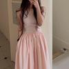 Tamanho foi atualizado primavera e verão novo pescoço redondo cintura costura emagrecimento plissado grande balanço vestido sem mangas roupas femininas