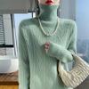 Lã Pura 2025 Primavera Novo Suéter Feminino Gola Alta Curta Jacquard Diamante Espesso Solto Tricotado para Usar por Baixo