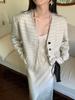 [Sem Devolução, Sem Troca] Thousand Gold Wear Decote V Desfiado Listrado 2024 Jaqueta Pequena Perfumada Top Curto Feminino de Primavera
