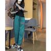 22853 Daaimaiyiyuan Moda Nova Outono 2025 Calça de Moletom Color Block Bicolor com Letra Calça Casual Elegante Feminina