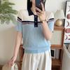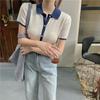 Gola Polo Seda Gelo Manga Curta Cardigan de Malha Mulheres 2021 Novo Verão Curto Pequeno Estilo Chanel Fino Top Cinza
