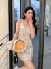 2023 Início da Primavera Nova Roupa Feminina Sexy Estilo Puro Desejo Vestido Colete Sem Mangas Renda Creme com Camada Interna