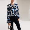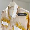 Camisa de seda feminina primavera e verão 2025, nova blusa de gola redonda estampada em crepe da China, 100% seda amoreira