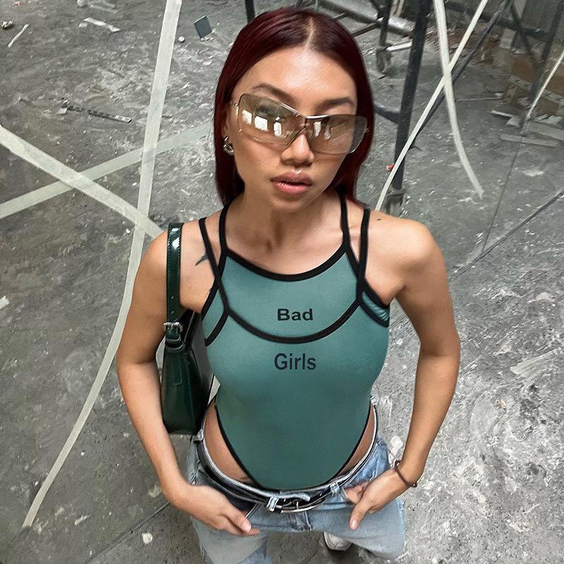 2023 europeu e americano street fashion sexy hot girl estilo contraste cor letra impressão cinta apertado all-match macacão
