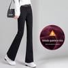 Black Color Waist Flared Pants, Black Fleece-lined Thickened Color Waist Flared Pants