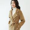 Sobretudo de Lã Dupla Face Feminino Gola de Terno 100% Lã Pura Solto com Cadarço 24 Longo Estilo Casual Sobretudo Acima do Joelho