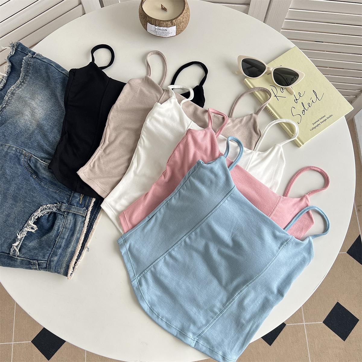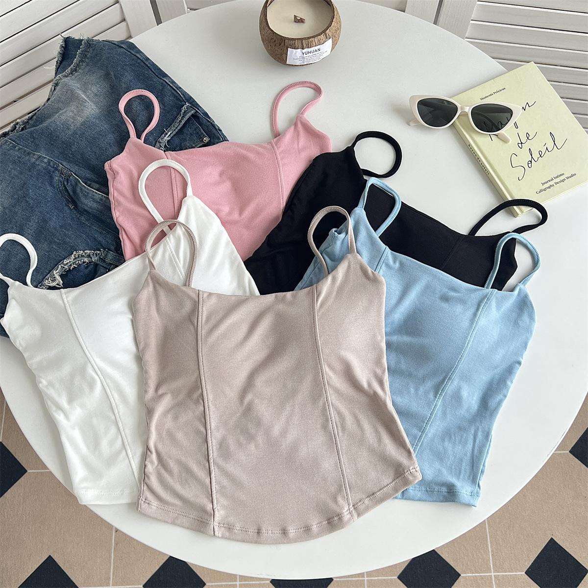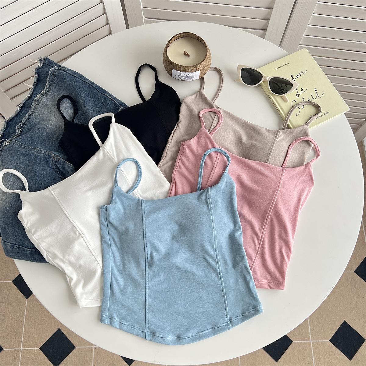 2024 Primavera e Verão Novas Mulheres Pequeno Camisole Vest Mulheres de algodão sem mangas Base Camisa Interna Vestindo Exterior Vestindo Beautiful Back Top