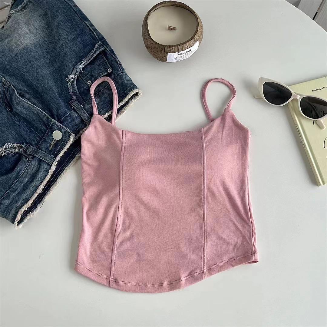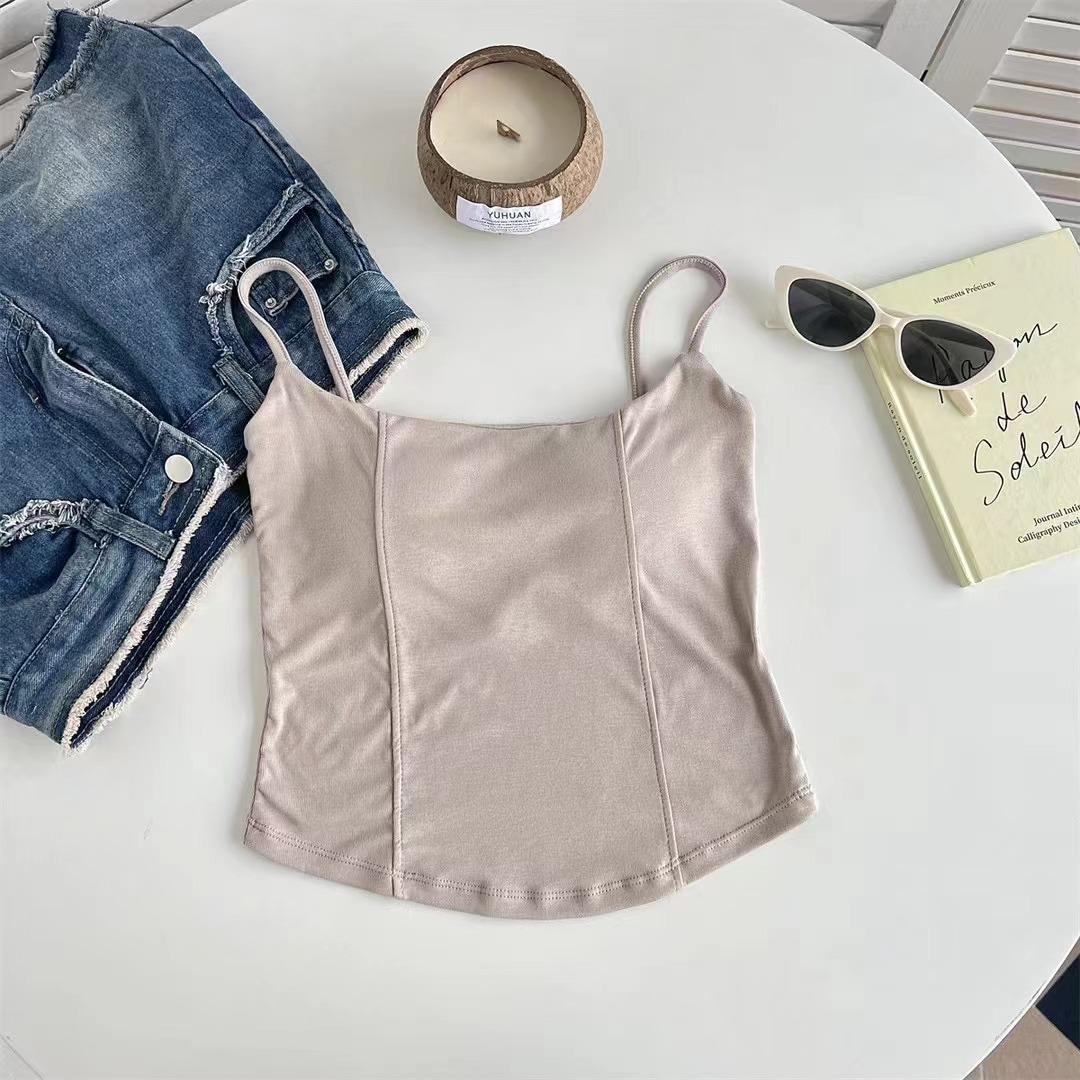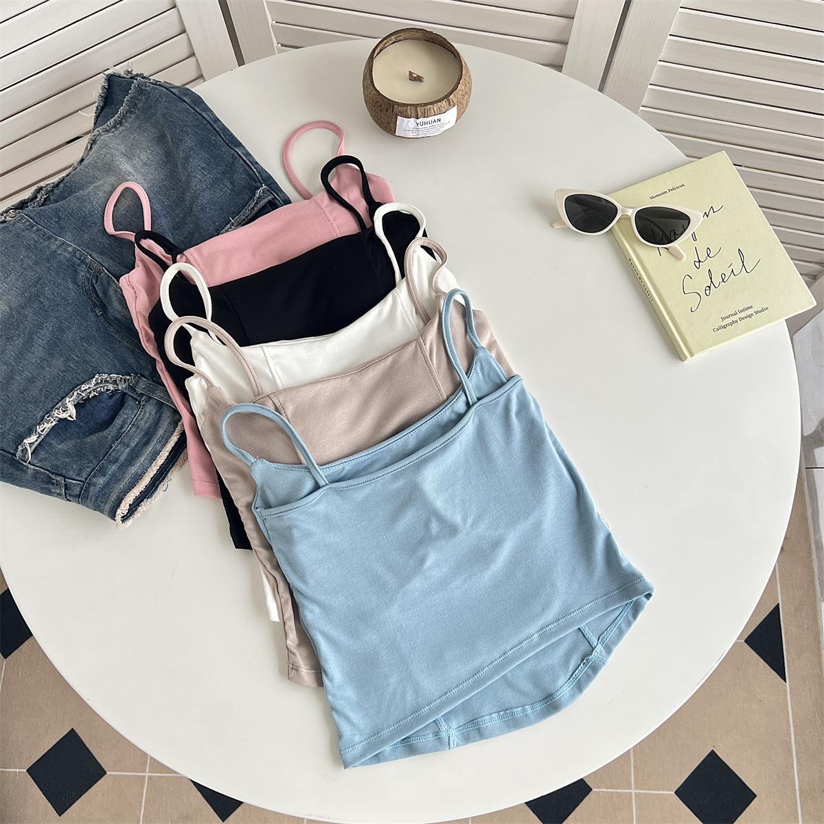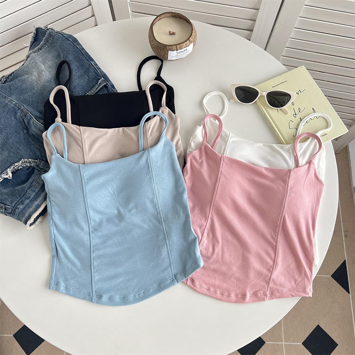 2024 Primavera e Verão Novas Mulheres Pequeno Camisole Vest Mulheres de algodão sem mangas Base Camisa Interna Vestindo Exterior Vestindo Beautiful Back Top