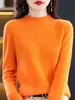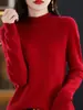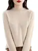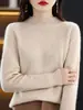 Outono e Inverno Novo Estilo Suéter 100% Lã Pura para Mulheres Recortado Gola Alta Metade Manga Comprida Solto Pulôver Lã Tricotada Camisa de Base para Mulheres