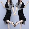 2025 Novo Estilo de Verão Elegante Vestido Floral Slim para Emagrecimento da Cintura com Gola de Renda para Mulheres
