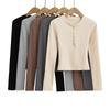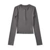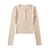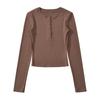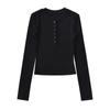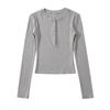 T-shirt de manga comprida estilo europeu e americano de pescoço redondo multi-botão para mulheres 2023 outono novo quente menina apertada emagrecimento camisa top