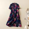 Real shot 2023 verão retro artístico chinês melhorado cheongsam solto comprimento médio manga curta algodão e linho vestido feminino
